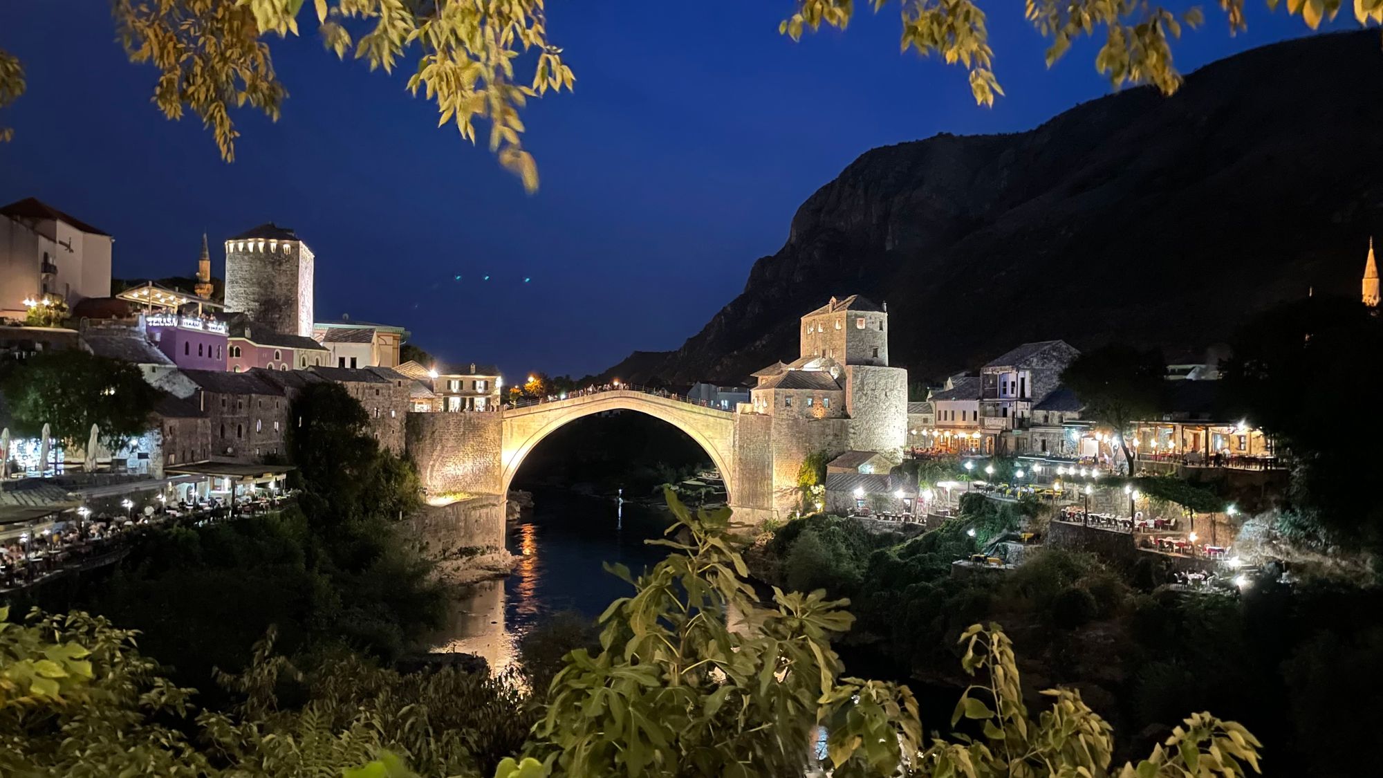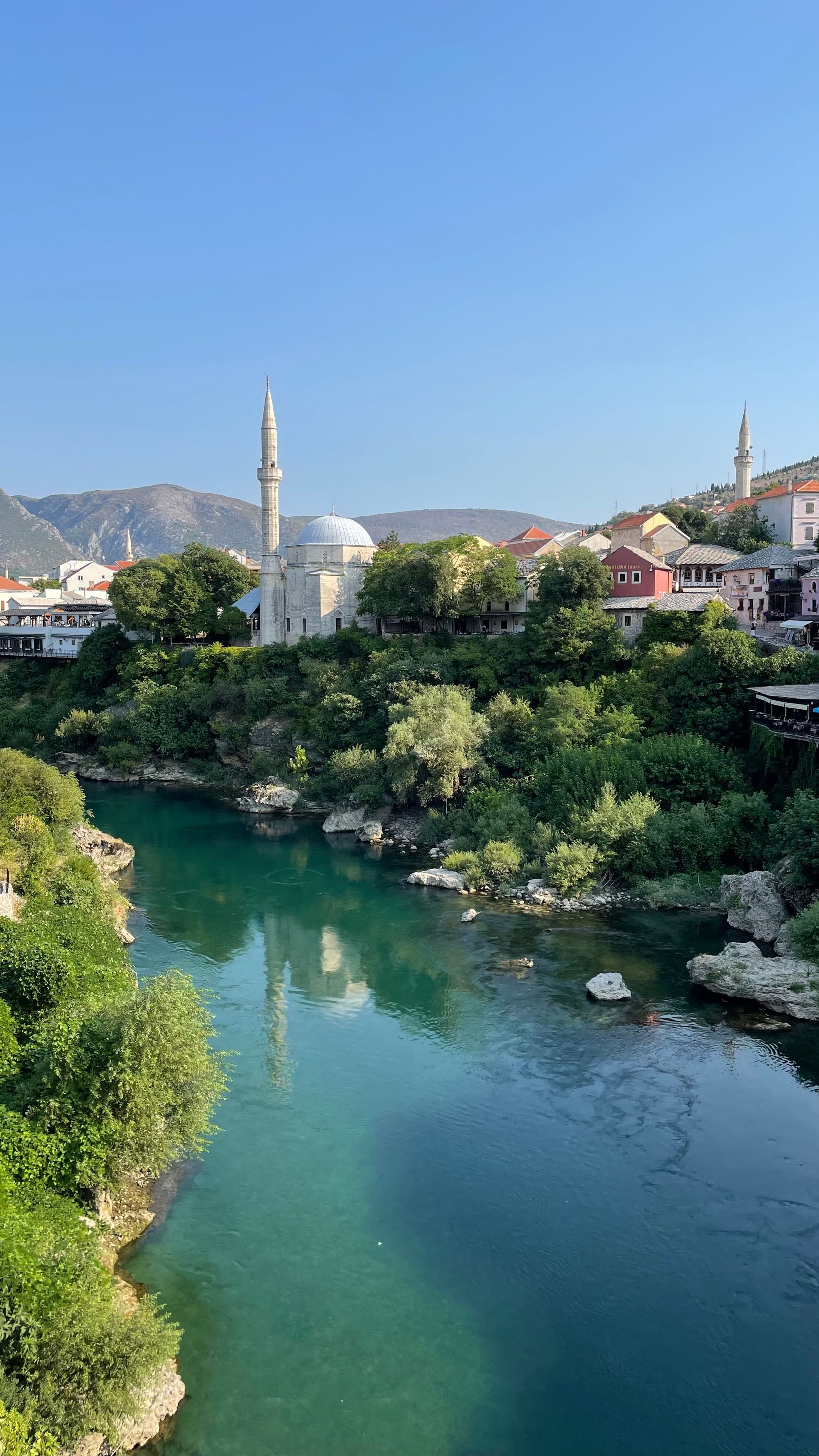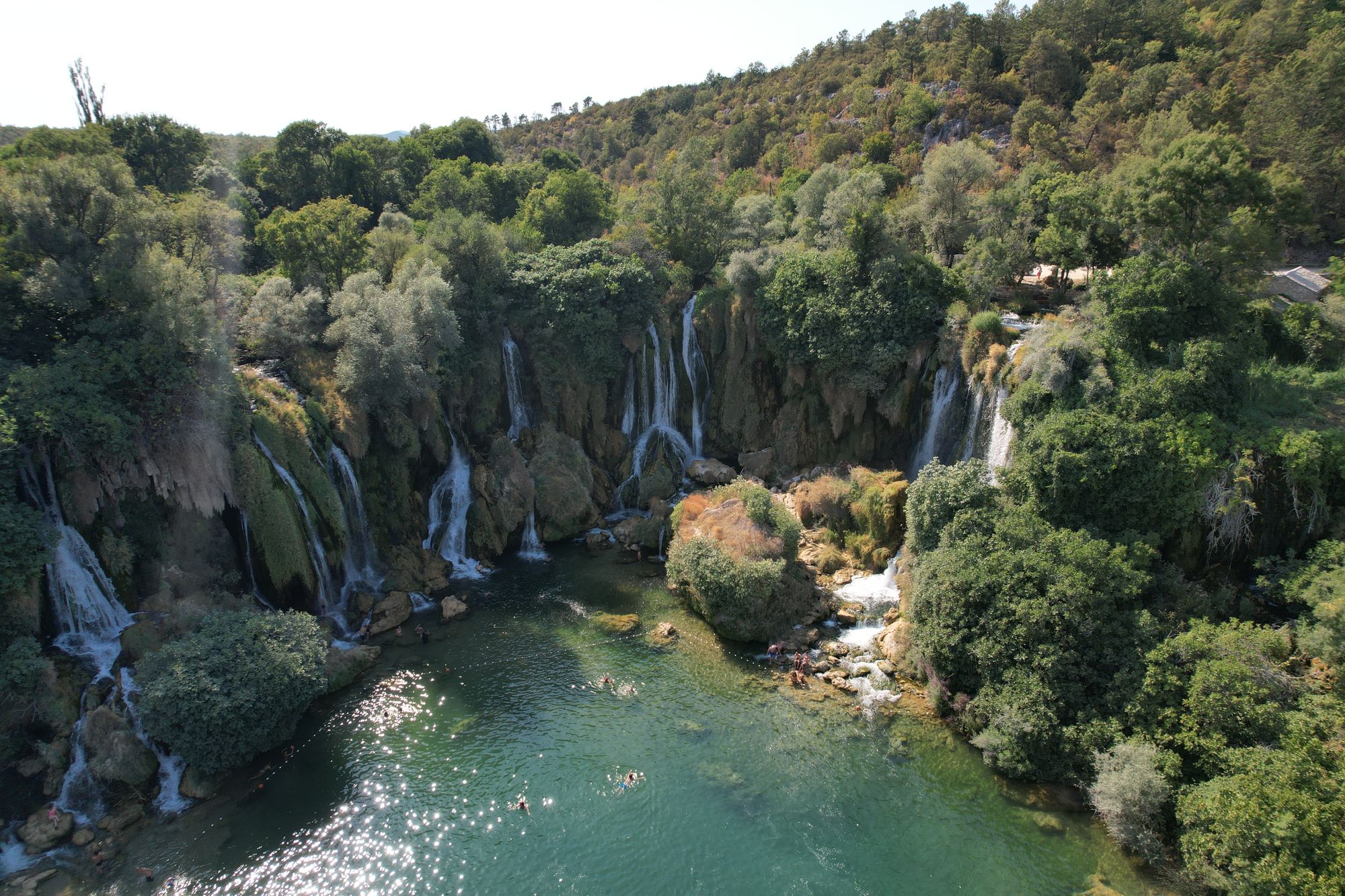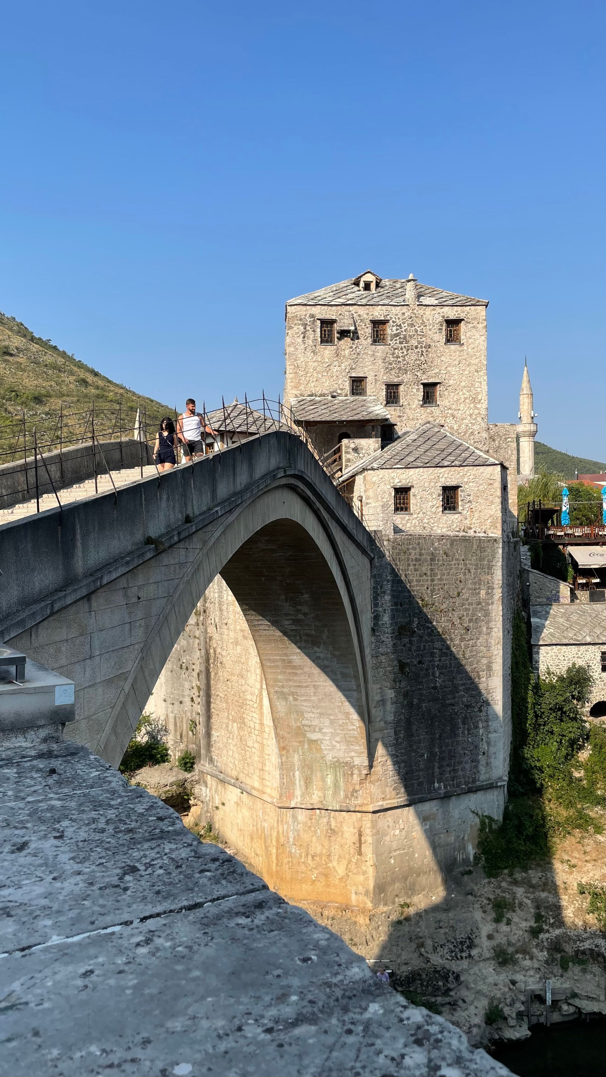Wat zijn we achteraf blij dat we de mogelijkheid hebben gehad om deze 2 plekken toch nog te bezoeken. We begonnen bij de watervallen die in mijn ogen iets te toeristisch zijn. Er zijn 3 of 4 bars/restaurants in en om de watervallen gebouwd en ze worden ook druk bezocht. Desalniettemin is het toch indrukwekkend zoveel watervallen te zien. Zakiya neemt er nog een frisse duik terwijl ik met de drone nog wat mooie foto's maak. Die avond verblijven we in Mostar en vanuit ons hotel krijgen we een tip voor een restaurant dat perfect zicht biedt op de Stari Most. De volgende ochtend bezoeken we de brug ook nog in daglicht en zien we zelfs iemand van de brug afspringen! We zijn het er beiden over eens, Bosnië is tot nu toe het hoogtepunt van onze reis. En Zakiya is zelfs ze onder de indruk van Stari Most dat ze volgende keer weer mee wilt als ik een brug wil bezoeken ;-)