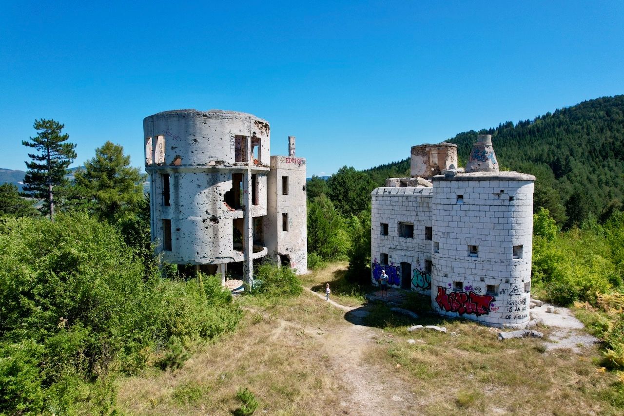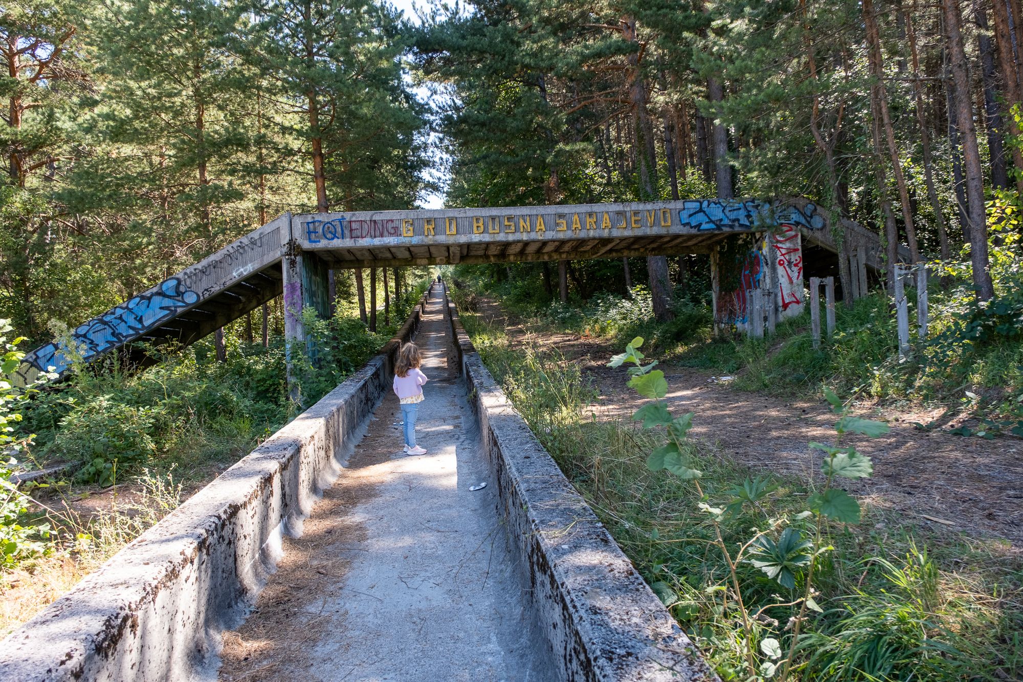 De eerste kennismaking met Bosnië Herzocogina is meteen al goed, wat een mooi land! We rijden tussen rotsformaties met daartussen een rivier. Sarajevo zelf ligt in een dal omringt door bergen. De avond van aankomst gaan we meteen al even in de stad kijken en bezoeken de eeuwige vlam. De dag erna is het zover, we gaan de Olympische bobsleebaan bezoeken. 's Ochtends gaan we al vroeg met de lift omhoog omdat we horen dat het er druk kan zijn. Bovenop de berg is er een prachtig uitzicht op de stad. Na een paar honderd meter gelopen te hebben komen we aan bij de bobsleebaan. We besluiten de hele bobsleebaan naar beneden te lopen. De hoge verwachtingen worden helemaal waar gemaakt, wat een gave ervaring om hier rond te lopen. De geschiedenis, de graffiti (we komen zelfs nog een stel jongeren tegen die een gedeelte opnieuw aan het spuiten zijn), maar ook de sniper gaten die er tijdens de oorlog zijn gemaakt. Het is echt bijzonder hoe er bovenop deze berg midden in het bos opeens zo'n enorme betonnen constructie is. Beneden bij de finish besluiten we nog even een uitkijktoren (Bistrik Tower) te bezoeken waar ook flink gevochten is. Er zijn allemaal schietgaten aangebracht en overal zijn kogelgaten te vinden. Op de weg terug vindt Zakiya zelfs nog een stuk bot wat volgens Emily tot een apenhoofd behoort zelf denk ik met mijn beperkte biologische kennis meer aan een ellepijp. Op dat moment besef je pas echt hoe afschuwelijk het hier moet zijn geweest.