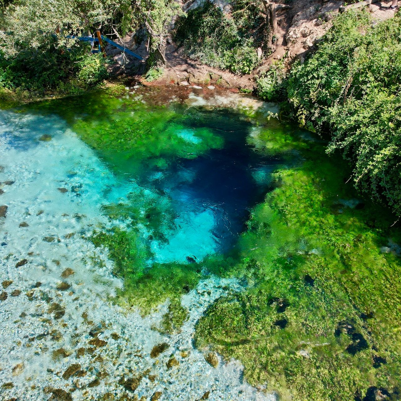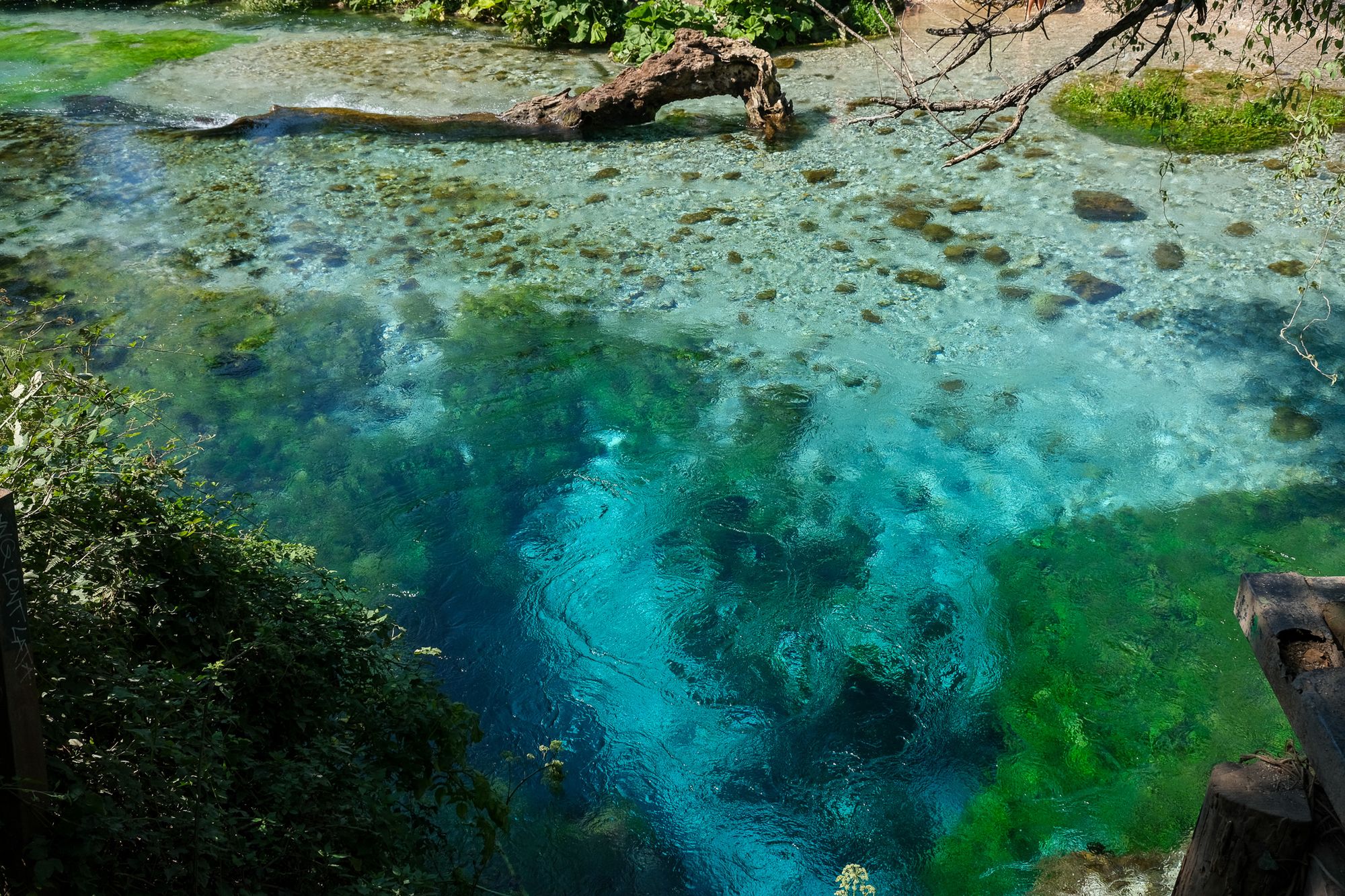 Het eerste dat Emily opvalt is het reuzenrad. Waar we haar in Budapest nog moesten overhalen om mee te gaan roept ze nu al direct dat ze in het reuzenrad wilt. Er blijkt zelfs een kleine kermis te zijn met botsauto's. Ze gaan alleen wat te hard dus die slaan we over. De dag erna bezoeken we The Blue Eye. Een bron waar helder blauw water uitstroomt. Het is erg mooi al bezoeken we de bron net wat te laat waardoor er ook al een hoop andere toeristen zijn. Het schijnt dat duikers al eens 50 meter zijn afgedaald maar niemand weet precies hoe diep de bron is. We zien ook een hoop mensen in de bron springen. Helaas hebben we onze zwemkleding niet meegenomen omdat we in de Lonely Planet lazen we dat zwemmen verboden zou zijn.