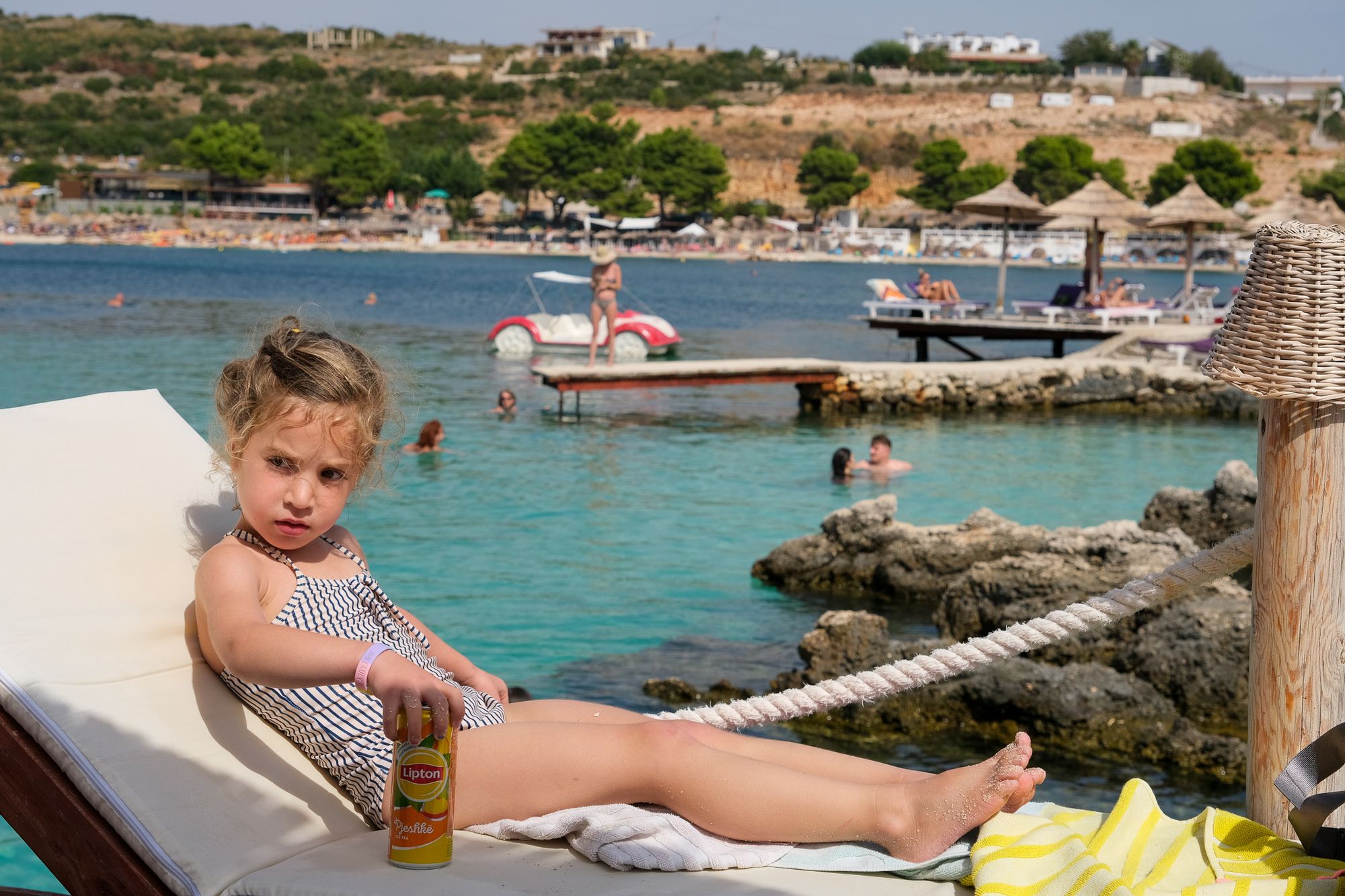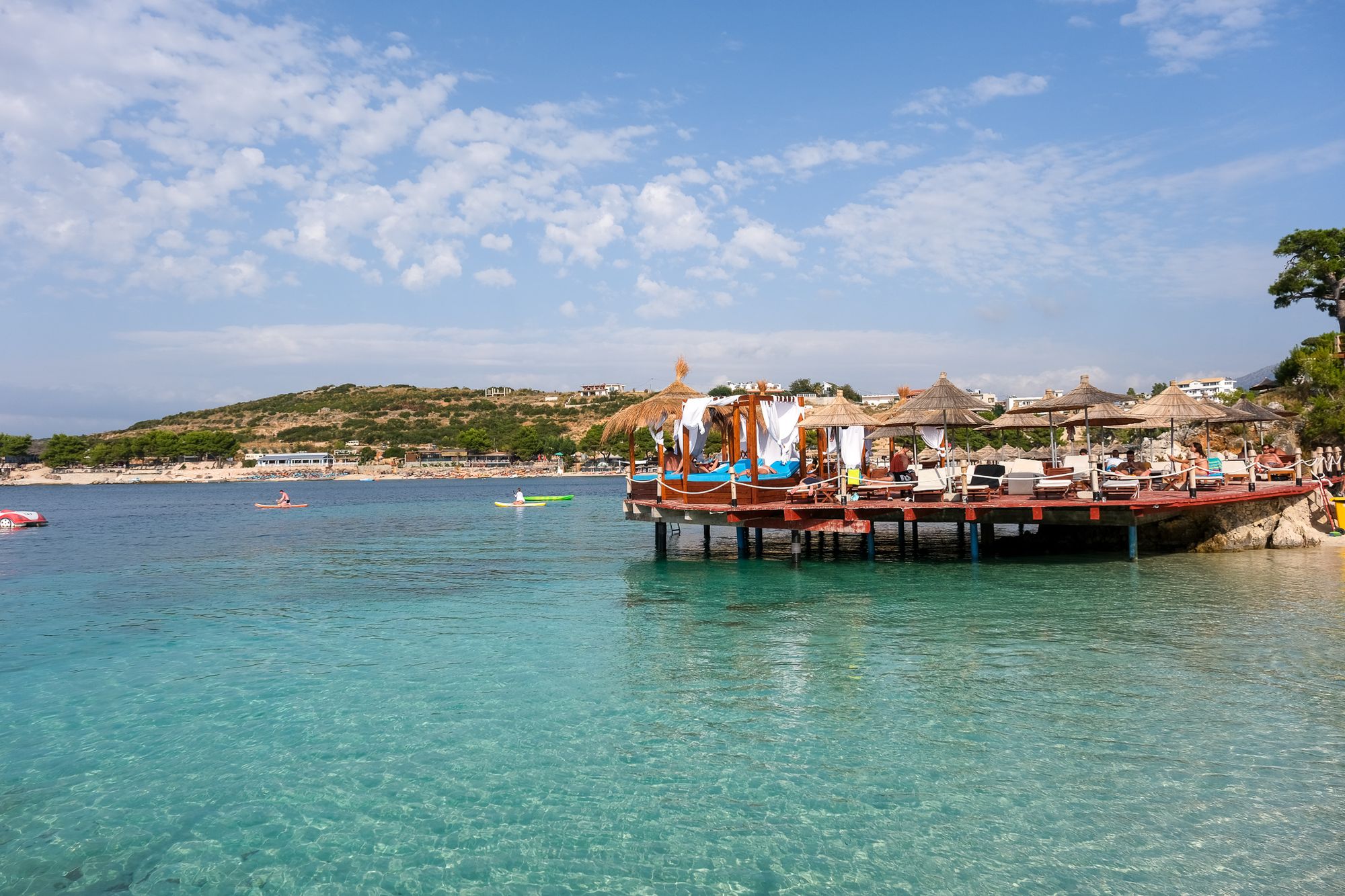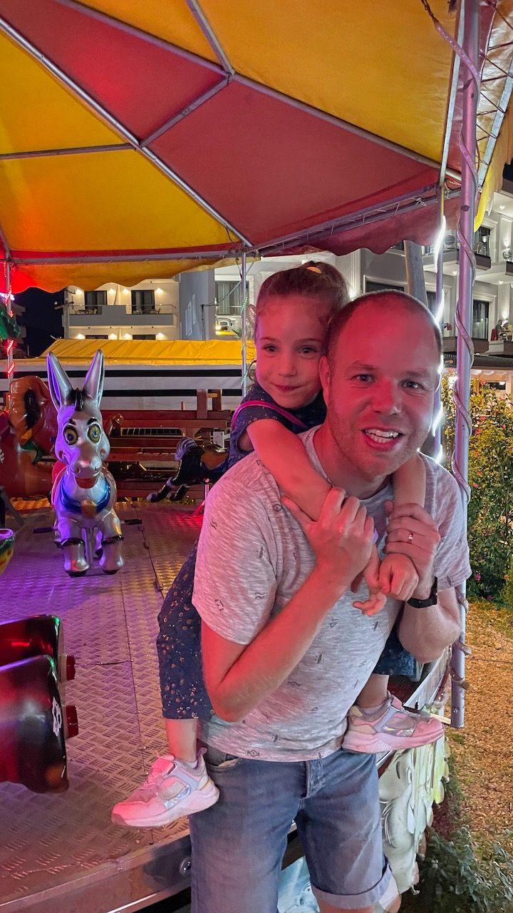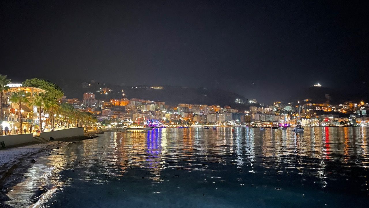 Na Sarande rijden we door naar Ksamil. De stranden rondom Sarande vielen wat tegen en Ksamil schijnt de mooiste stranden te hebben. Het is maar 20 minuten rijden en de stranden zijn inderdaad een stuk mooier dan bij Sarande. We boeken een hotel dat stond aangeraden in de Lonely Planet, tot nu toe waren dat namelijk steeds fijne hotels. Echter dit hotel is de eerste tegenvaller. We krijgen nog wel een betere kamer maar alsnog is het niet geweldig. In de douche en toilet steken er wat stroomdraden uit de muur die afgetaped zijn. Maar we zijn gekomen voor de stranden dus maken we er maar het beste van. Ook hier verblijven we 3 nachten en zijn we iedere dag bij het strand te vinden. En ook hier is er 's avonds een kermis. De botsauto's gaan hier wat minder hard dus we botsen er lekker op los in de avond.