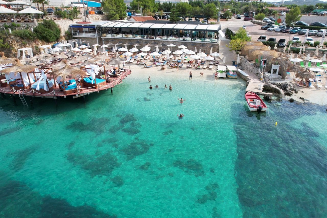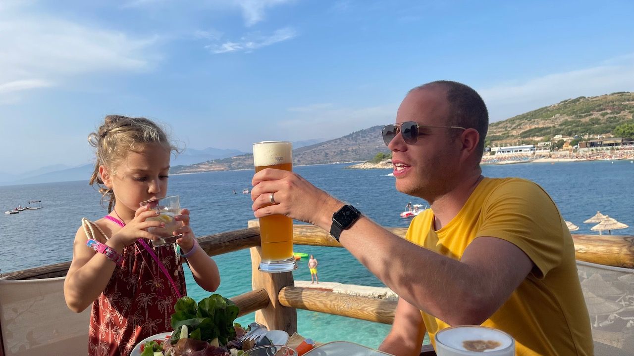 Week 8 staat vooral in het teken van relaxen aan de stranden van Albanië. We bezochten Sarande en Ksamil. De weg vanuit Berat naar Sarande was nog even een uitdaging. Het was slechts 200 kilometer, maar er stond 5 uur voor. Al snel kwamen we erachter waarom: zeker 20 kilometer ging over een onverharde weg. Eerst dachten we nog dat de navigatie een verkeerde weg aangaf, maar toen we ook andere auto's deze weg zagen nemen gingen we er toch maar achteraan. Na veel gehobbel en kuilen proberen te ontwijken komen we via een hoop bergweggetjes en zelfs nog een oliemeer aan op onze bestemming.